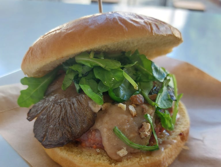 Esta semana con motivo de San Andrés ofrecemos esta maravilla de hamburguesa con setas, salsa de castañas, rúcula servida en pan brioche, te la vas a perder?
